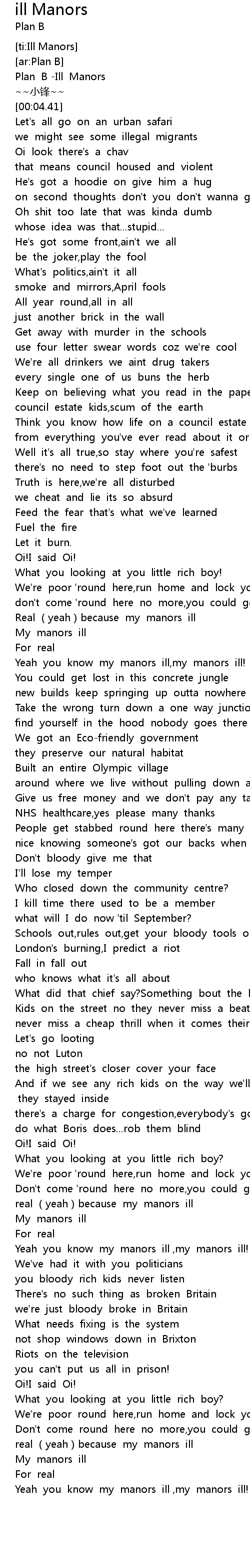 | [00:00.14] | Plan B -Ill Manors |