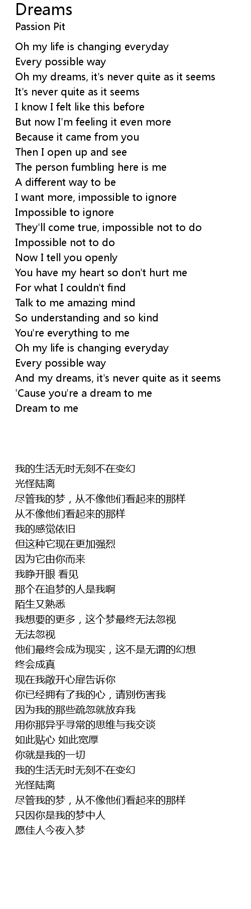 Oh my dreams, it's never quite as it seems |