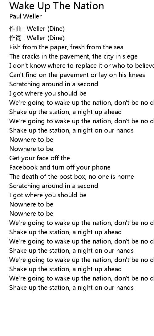 | Song | Wake Up The Nation |