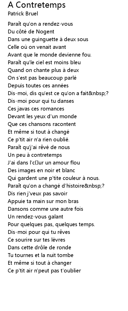 | Song | A Contretemps |