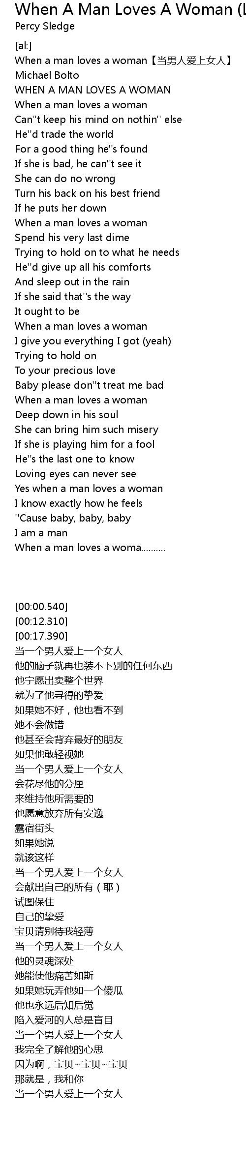 | [00:00.540] | When a man loves a woman dang nan ren ai shang nv ren |