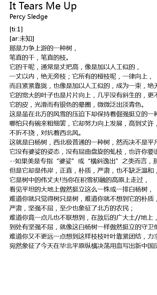 | [01:13.384] | 这就是白杨树,西北极普通的一种树,然而决不是平凡的树! |