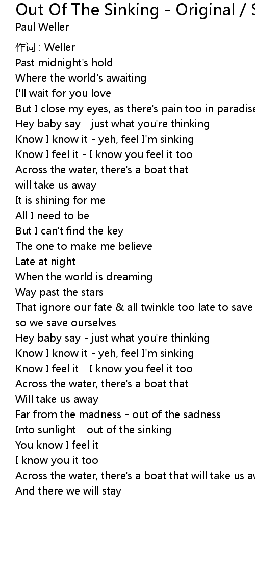 | Know I know it - yeh, feel I'm sinking | |