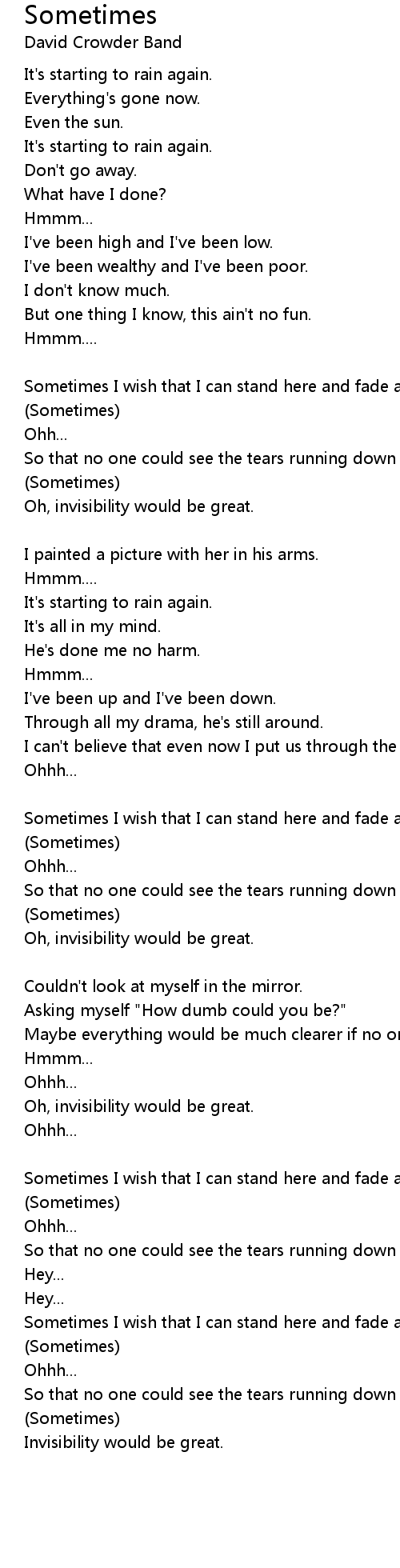Sometimes I wish that I can stand here and fade away. |