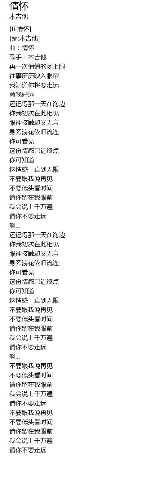 | [01:35.551] | 请你不要走远 |