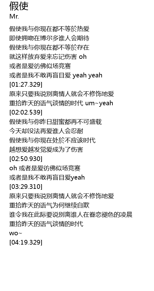 | [00:34.839] | jiǎ shǐ wǒ yǔ nǐ xiàn zài dōu bù děng yú rè ài |
