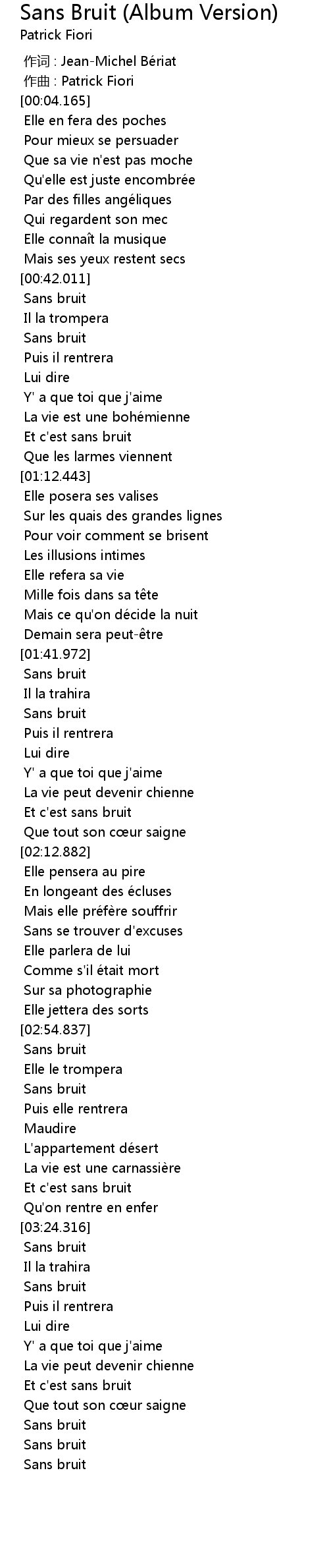 | [00:01.000] | zuò qǔ : Patrick Fiori |