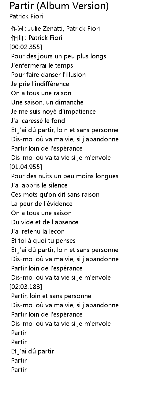 | [01:33.347] | Et j' ai d partir, loin et sans personne |