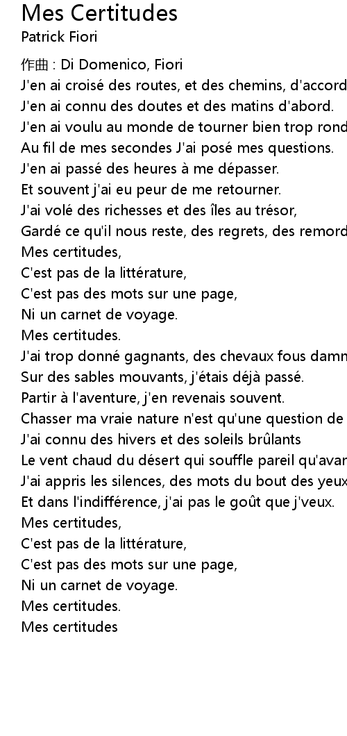 | Song | Mes Certitudes |