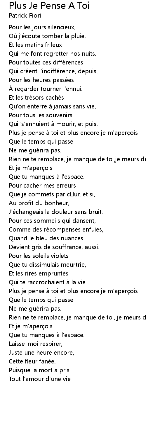 | Plus je pense a toi et plus encore je m' aper ois | |