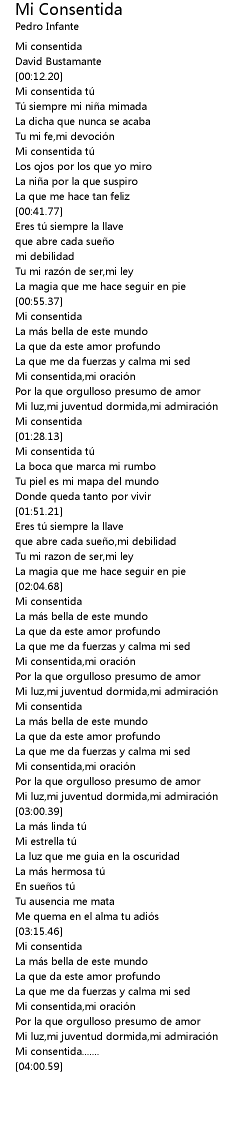 | [00:17.81] | Tú siempre mi ni a mimada |