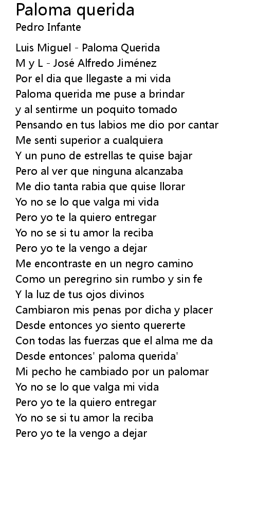 | Song | Paloma querida |