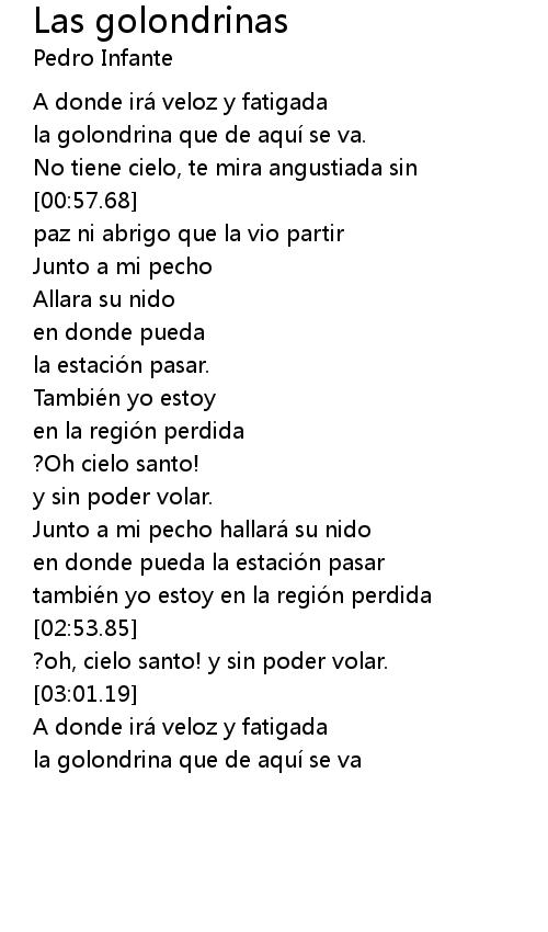 | [03:00.51] | ? oh, cielo santo! y sin poder volar. |