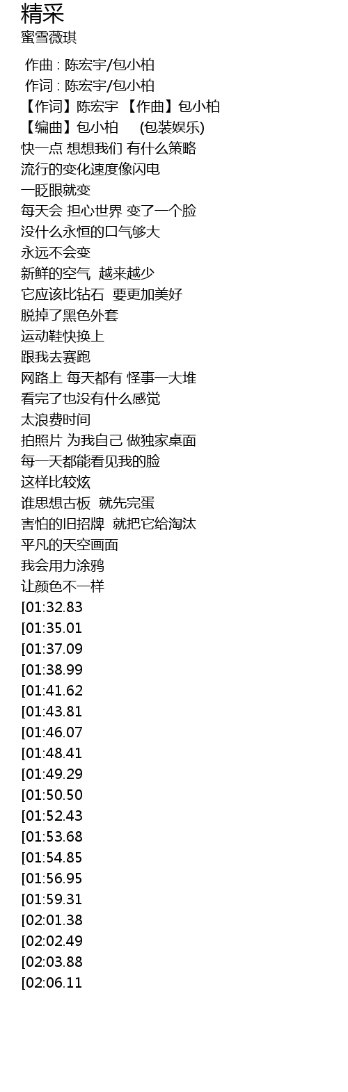 | [00:01.00] | 作词 : 陈宏宇/包小柏 |