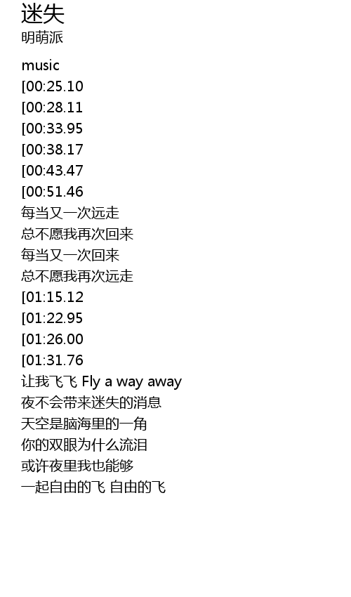 | [01:41.09] | ràng wǒ fēi fēi Fly a way away |