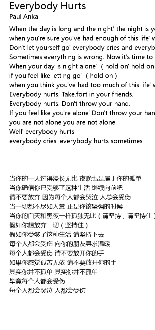 | [03:27.61] | everybody cries. everybody hurts sometimes . |