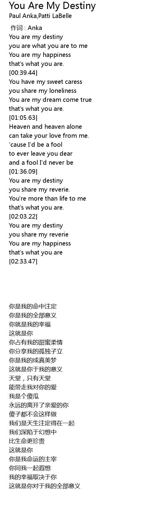 | [01:37.81] | You are my destiny |