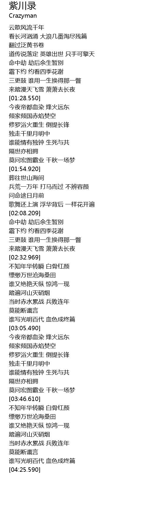 | [01:59.000] | 兵荒一万年 打马而过 不辨容颜 |