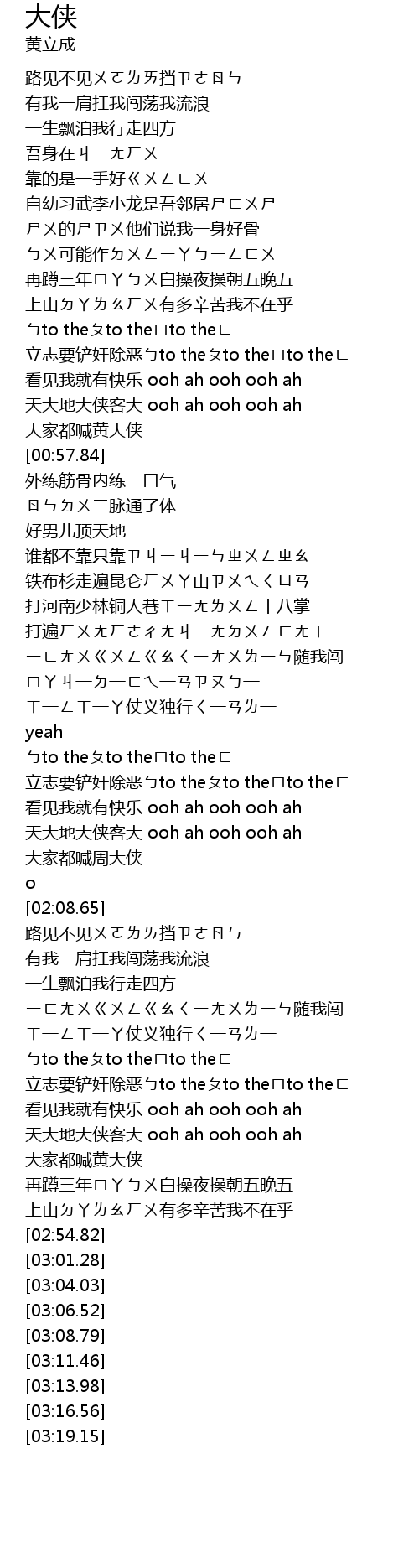 | [01:41.44] | 立志要铲奸除恶ㄅto theㄆto theㄇto theㄈ |