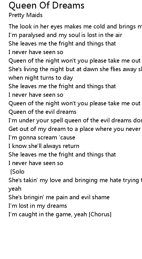 I'm under your spell queen of the evil dreams don't leave me in hell |