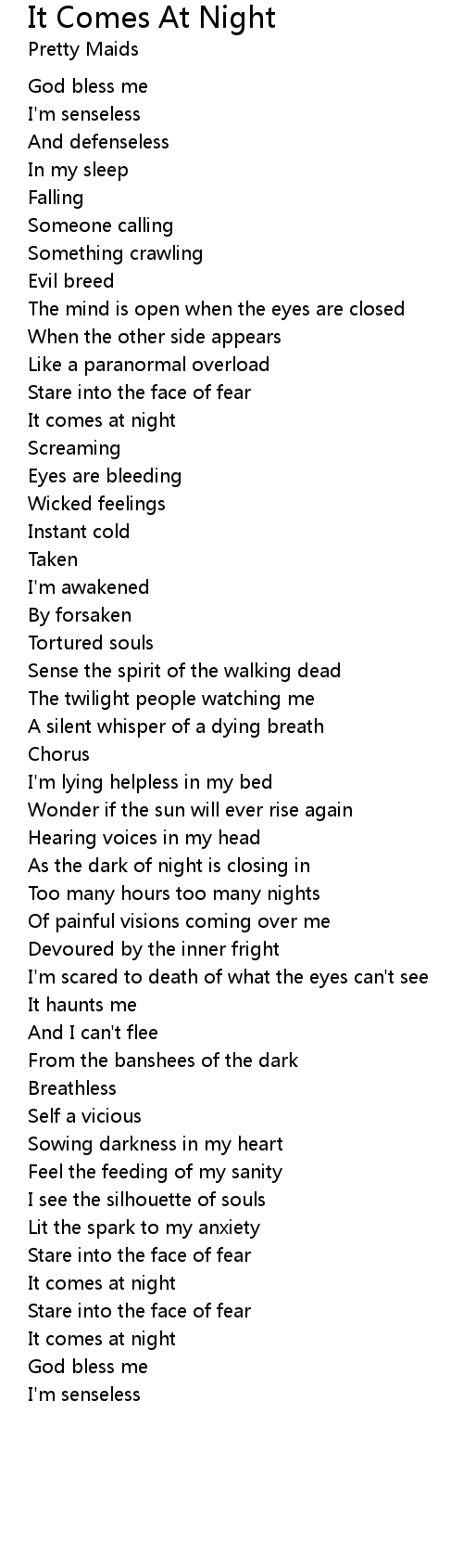 It Comes At Night Lyrics