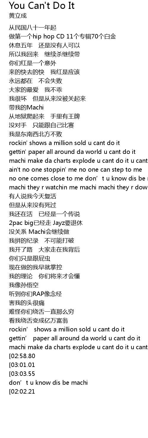 | [01:46.60] | machi make da charts explode u cant do it u cant do it u cant do it |