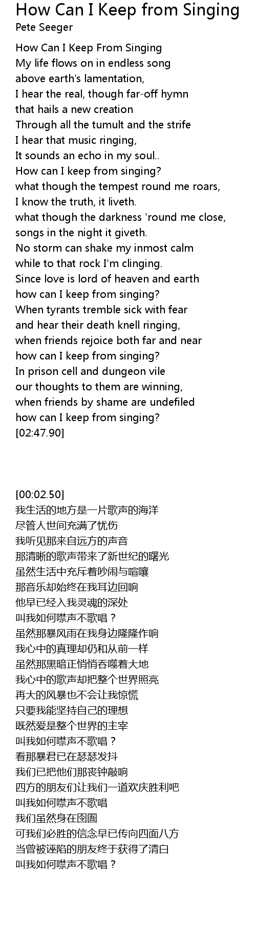 How Can I Keep From Singing |