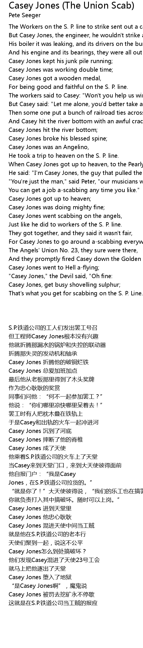 But Casey Jones, the engineer, he wouldn't strike at all; |