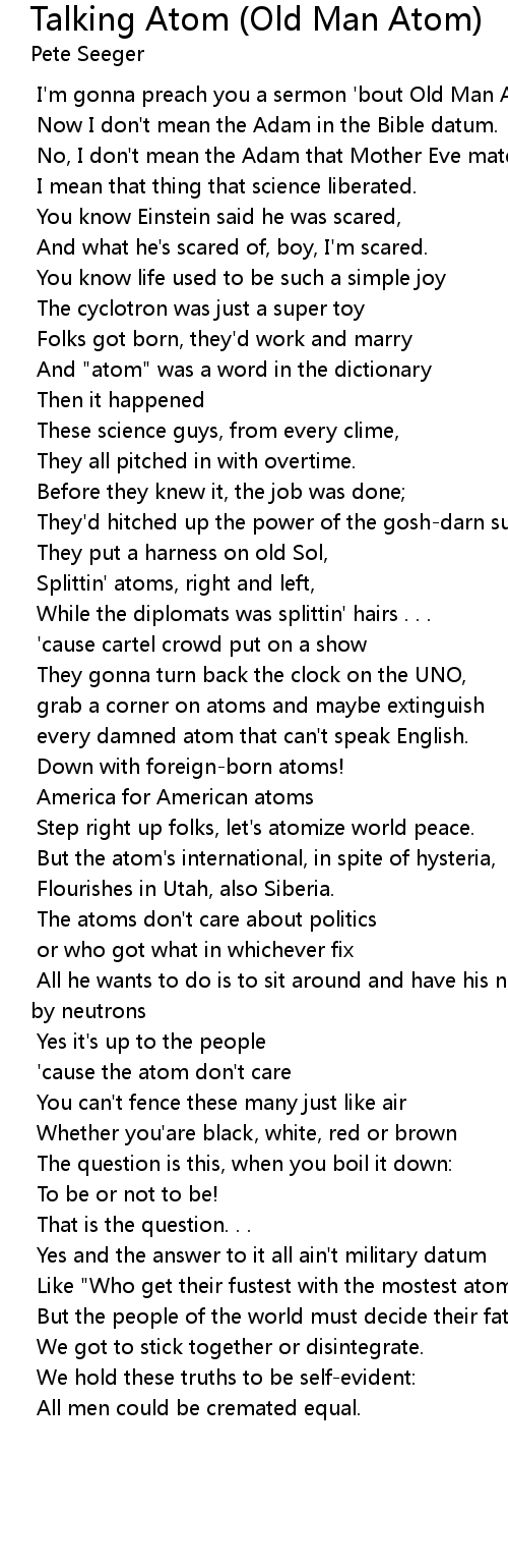 I'm gonna preach you a sermon 'bout Old Man Atom, |