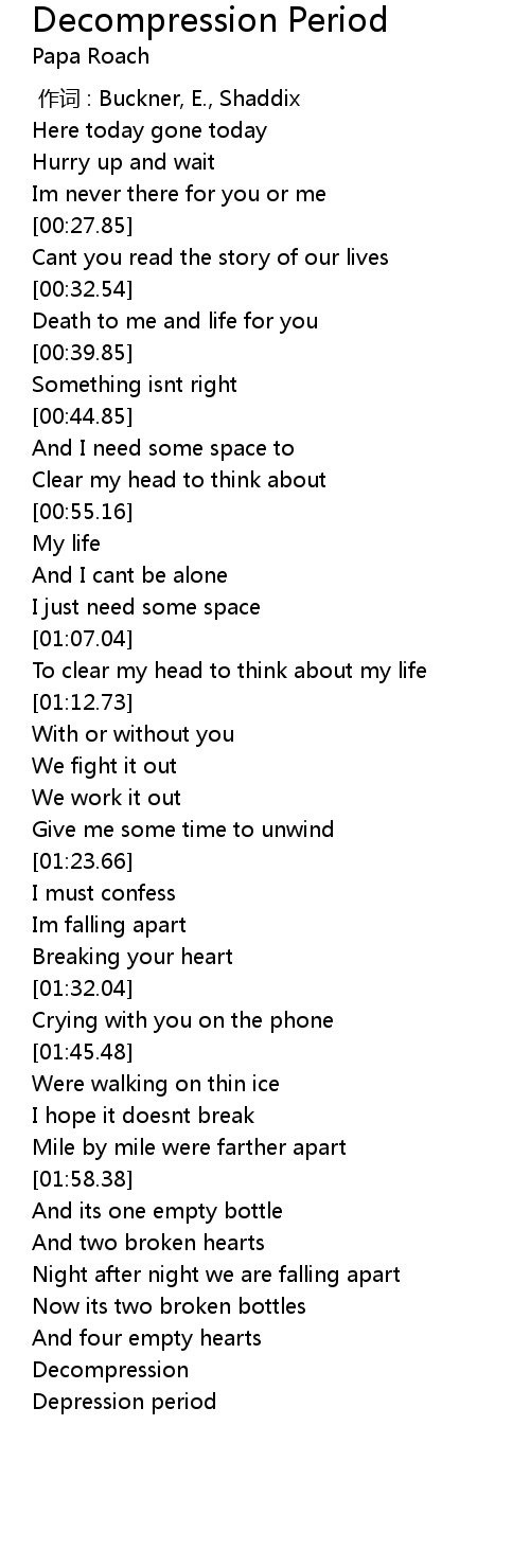 | [00:00.00] | 作词 : Buckner, E., Shaddix |