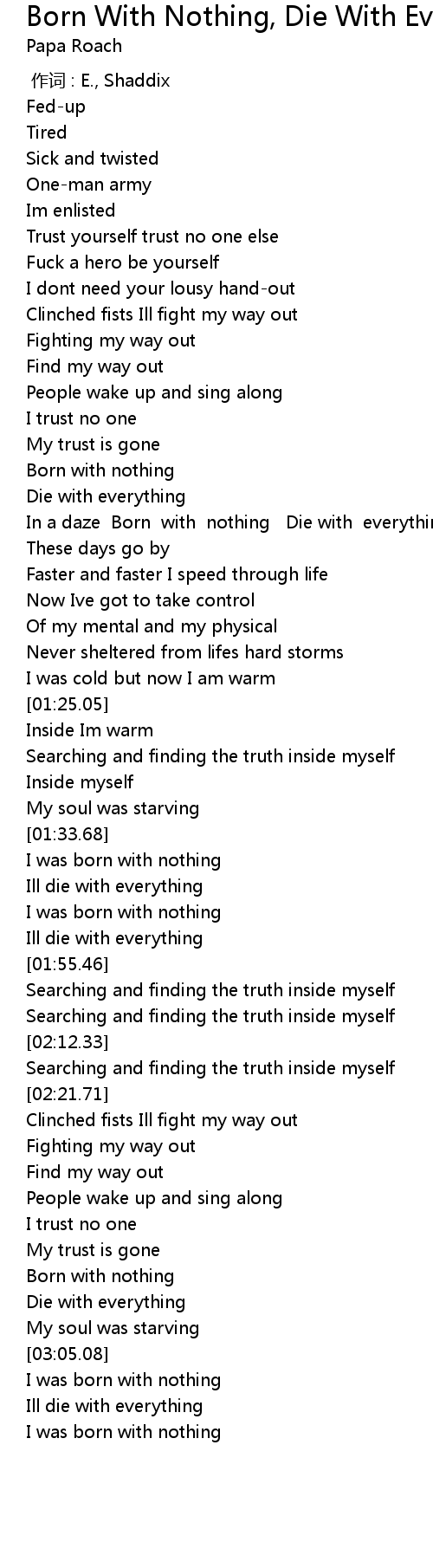 | [02:53.33] | Born with nothing |