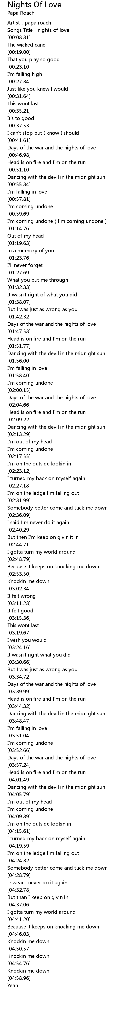 | [00:01.40] | Artist:papa roach |
