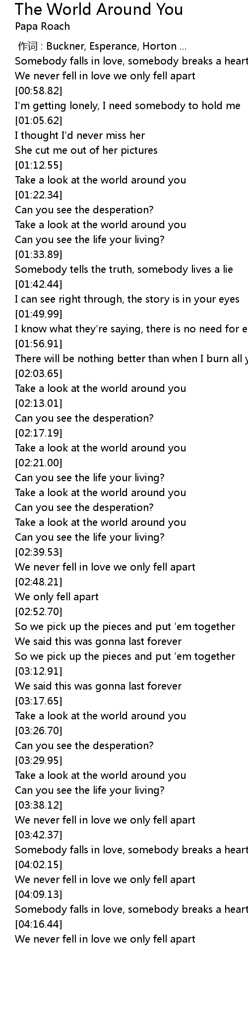 | [04:17.37] | We never fell in love we only fell apart |