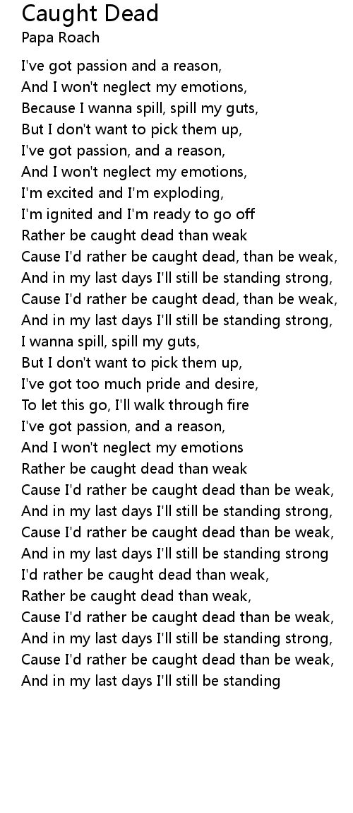 Cause I'd rather be caught dead, than be weak, |