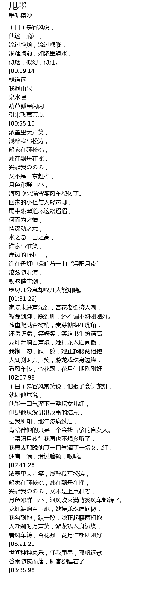 | [01:29.40] | 墨尽几分意却叹几人能知晓。 |