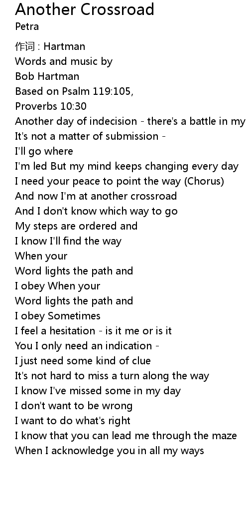 | And now I' m at another crossroad | |