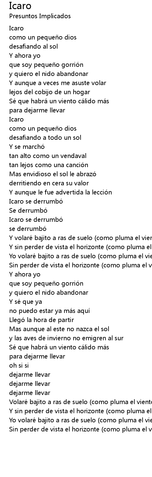 | Volare bajito a ras de suelo como pluma el viento me llevara | |