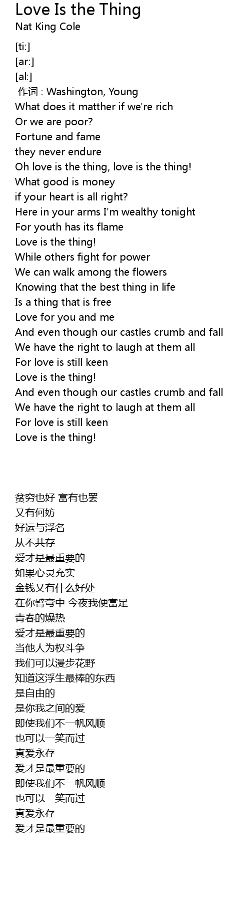 | [00:27.58] | Oh love is the thing, love is the thing! |