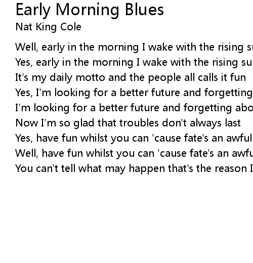 Well, early in the morning I wake with the rising sun |