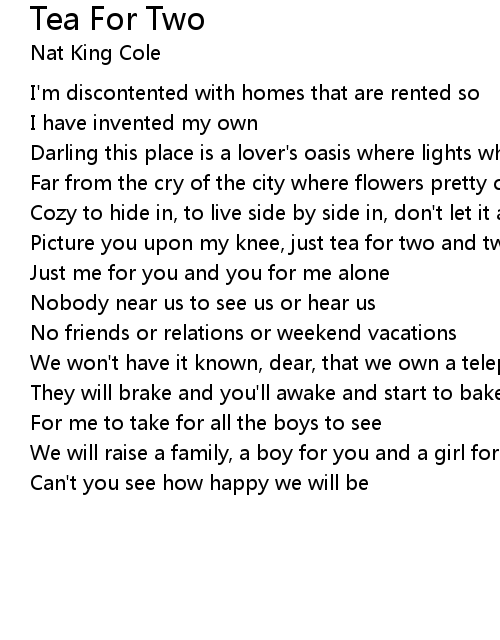 Picture you upon my knee, just tea for two and two for tea |