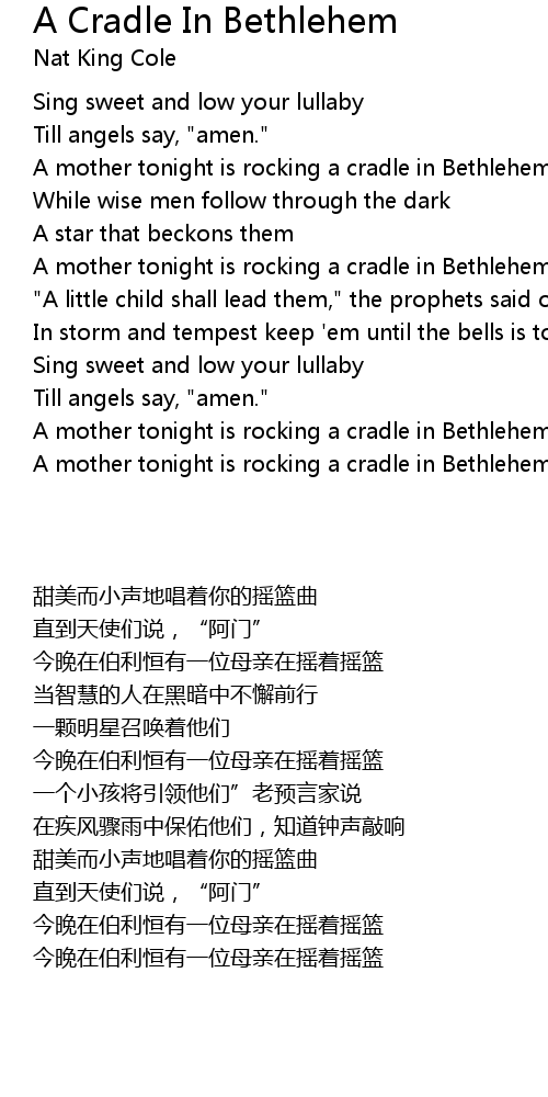 | [01:09.392] | A mother tonight is rocking a cradle in Bethlehem |
