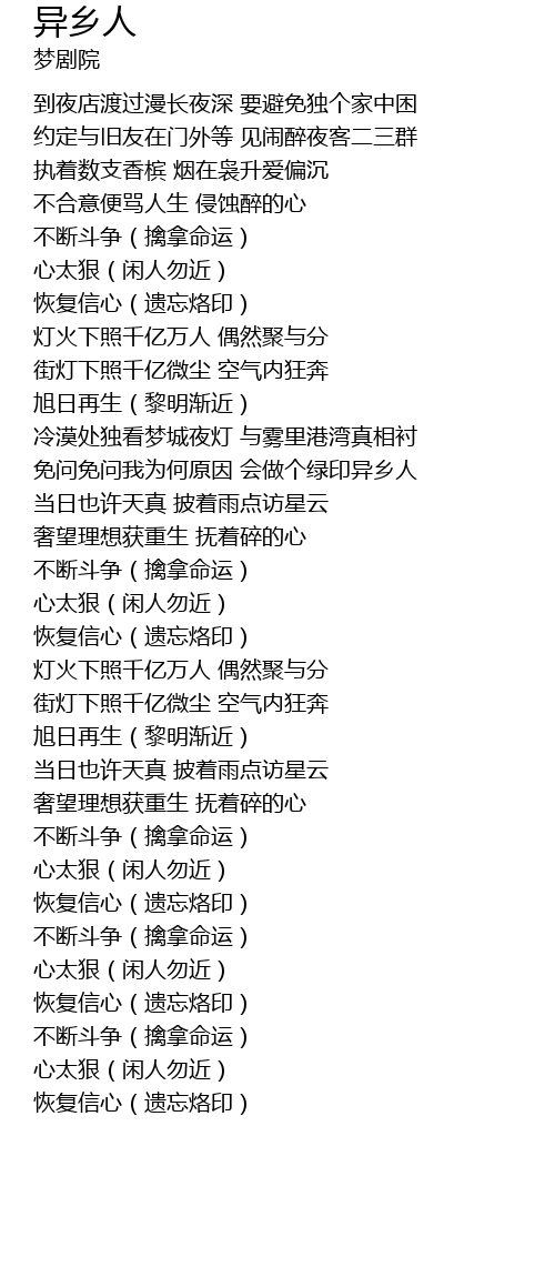 | [01:37.400] | 免问免问我为何原因 会做个绿印异乡人 |