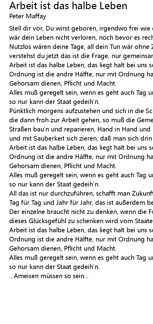 | Arbeit ist das halbe Leben, das liegt halt bei uns so drin, | |
