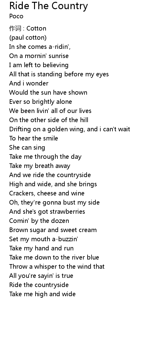 | And we ride the countryside | |