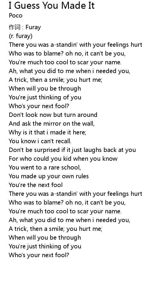 | Song | I Guess You Made It |