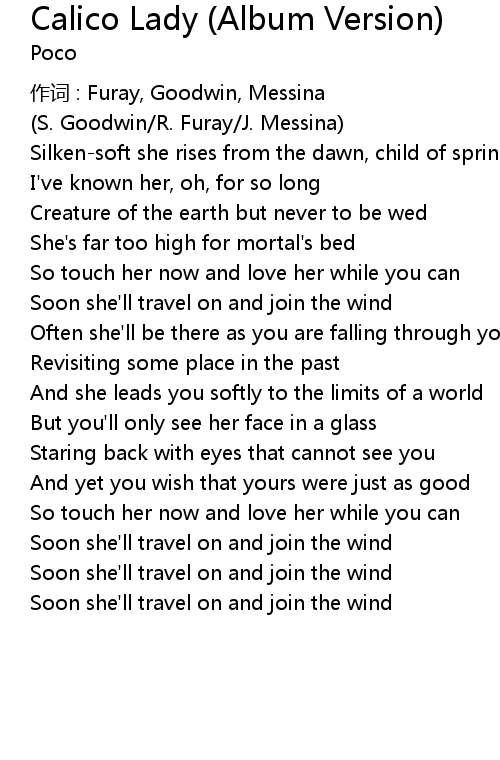 | Song | Calico Lady (Album Version) |