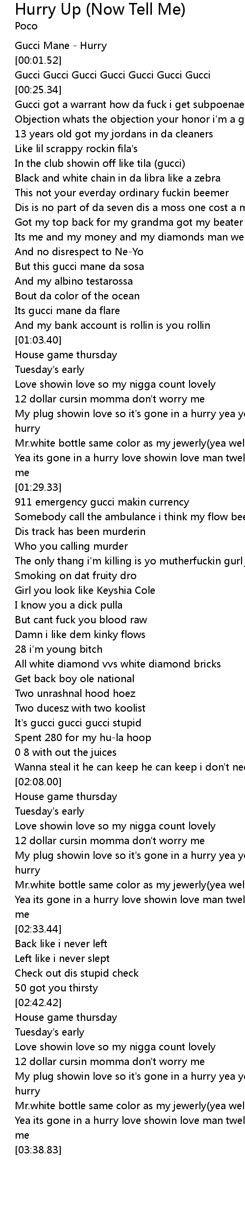 | [00:00.52] | Gucci Mane - Hurry |