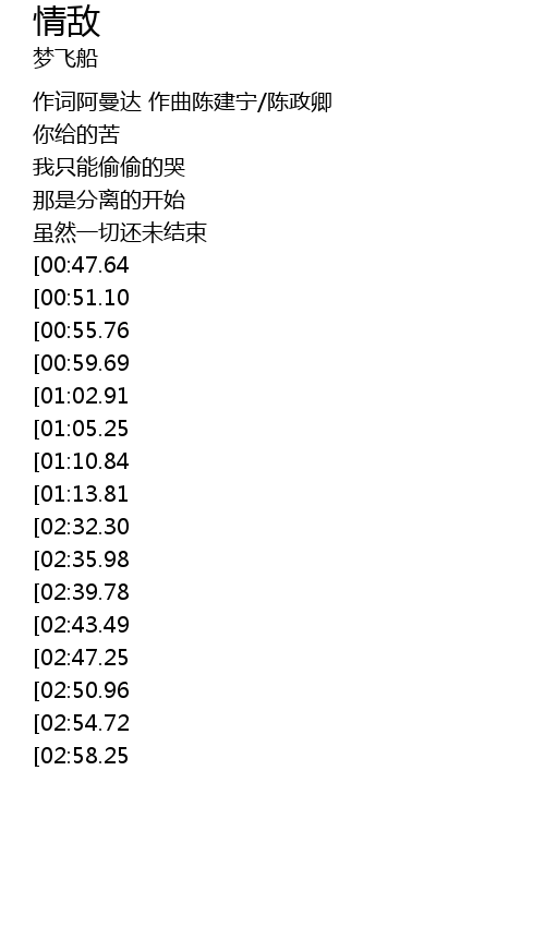 | [00:13.40] | 作词阿曼达 作曲陈建宁/陈政卿 |