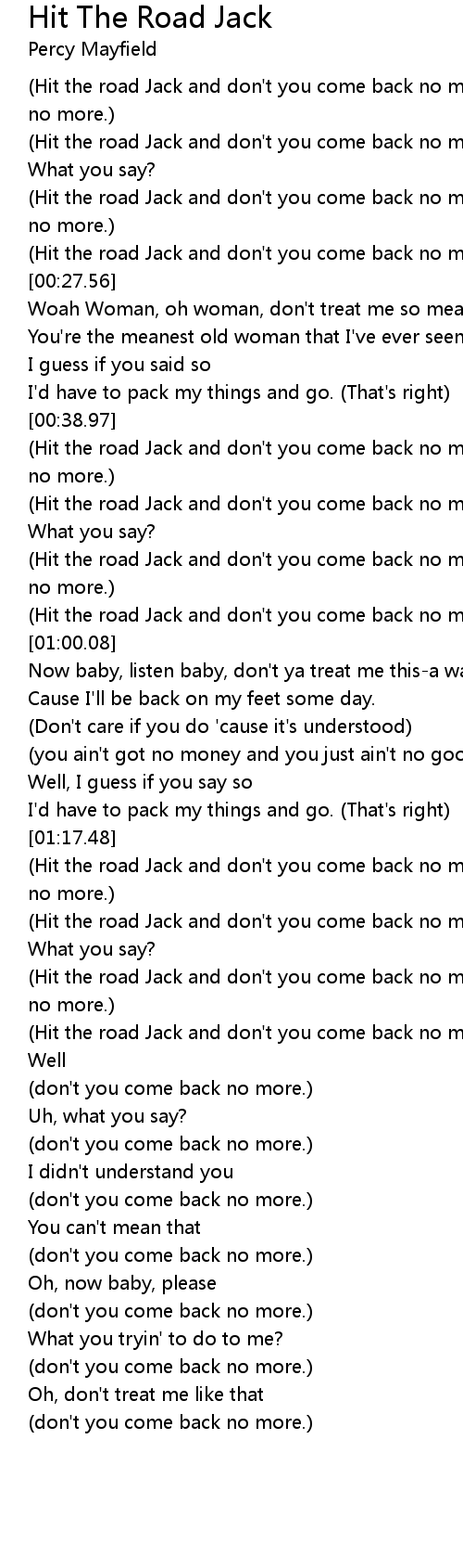 (Hit the road Jack and don't you come back no more, no more, no more, no more.) |