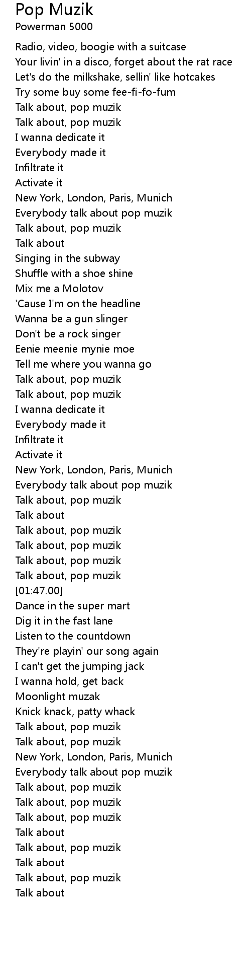 Talk about, pop muzik |
